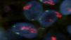Overlapping cells were excluded from analysis. Two signals were counted as adjacent or fused only if they were separated by less than one domain. Two different individuals examined one hundred spindle cells interphase nuclei with strong and well-delineated signals.