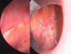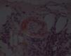 After this period, a decrease in breath sounds was noted over the right lung base. The patient was asymptomatic, afebrile, without peripheral edema. A chest radiograph revealed a mild right pleural effusion. A diagnostic thoracocentesis showed a clear light yellow fluid, exudate, glucose 118mg/dL and normal ADA. Cytological analysis showed a mononuclear predominance. Pleural fluid study was negative for malignancy or infection (T. whipplei PCR was negative). Thoracic CT scan revealed unilateral pleural effusion without parenchymal or mediastinal abnormalities. Two percutaneous Abrams needle biopsies of the pleura (with 3 weeks of interval) were negative for malignancy and infection, only demonstrating nonspecific fibrous thickening of the pleura. The thoracoscopy showed hyperaemia and thickening of the costal pleura, and small whitish nodular lesions, that were biopsied (Fig. 1). An apple-green birefringence was noted on Congo-red staining under polarized light, compatible with pleural amyloidosis, mostly with a perivascular pattern (Fig. 2).