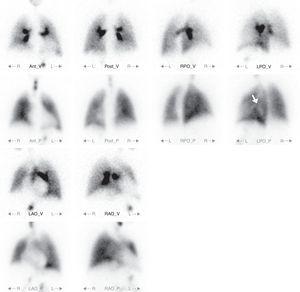 Functional methods have been represented by pulmonary ventilation and perfusion scintigraphy (V/QS), traditionally using planar imaging (V/QS-planar).3 V/QS-planar consists in obtaining two sets of scintigraphic images of the lungs: one representing pulmonary ventilation (by means of a radiopharmaceutical with alveolar air distribution) and another exhibiting pulmonary perfusion (with a radiopharmaceutical captured in the pulmonary capillaries). The scintigraphic diagnosis of PTE is based on the identification of pulmonary segments with a perfusion defect and preserved ventilation, consisting on a mismatch pattern. In planar imaging, the acquired images represent a projection of the totality of pulmonary ventilation and perfusion in different orientations: anterior, posterior, anterior oblique and posterior oblique, more frequently.