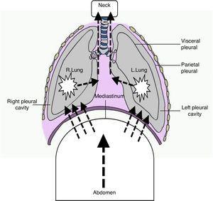 The current guidelines for the management of pneumothorax and pneumomediastinum do not indicate a specific treatment for Hamman's syndrome. The recommendation of the experts is to encourage better coordination between thoracic surgeons, gynecologists and lung specialists so that this condition can be managed better.1, 7, 8 Lung specialists should be able to recognize this rare complication of pregnancy in order to coordinate a useful collaboration with other specialists during patient observation and treatment.