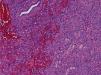 A 24-year-old man, a non-smoker, presented at the emergency department with complaints of cough, haemoptysis, dyspnoea on exertion, fever (38°C) and excessive sweating at night, with two days of evolution. He had no relevant pathologic background, and physical examination was normal. On the chest X-ray we found a right infrahilar shadow, the bronchoscopy was normal as were the respiratory function and the blood tests. The first computed tomography (CT) of the chest showed a 44mm heterogeneous (well-circumscribed and probably cavitated) ovoid mass (Fig. 1), located in the inner right upper lobe, near the middle lobe. The differential diagnosis was lung abscess, round pneumonia, pulmonary tuberculosis, aspergilloma and tumour. After a 3-week course of antibiotics, a second CT, now with intravenous iodinated contrast, showed a homogenous mass of the same size and location, and the patient was transferred for surgical evaluation, and resection of the right upper and middle lobe. Histopathological examination revealed spindle cell proliferation, with storiform or fascicular pattern, with foci of haemorrhage, inflammatory infiltrate of lymphocytes, neutrophils, eosinophils and aggregates of foam cell (Fig. 2). Rare Touton giant cells were also found. No significant cytological atypia was identified. The neoplastic cells were diffusely and strongly positive for immunostaining for ALK and histiocytic marker CD163, while weakly and focally positive for smooth muscle marker SMA and cytokeratin CAM5.2.