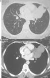 A computed tomography scan (Figs. 2 and 3) revealed a partially cystic heterogeneous mass, forming at the lingular bronchi and then developing in intrathoracic without mediastinal lymphadenopathy or pleural effusion.